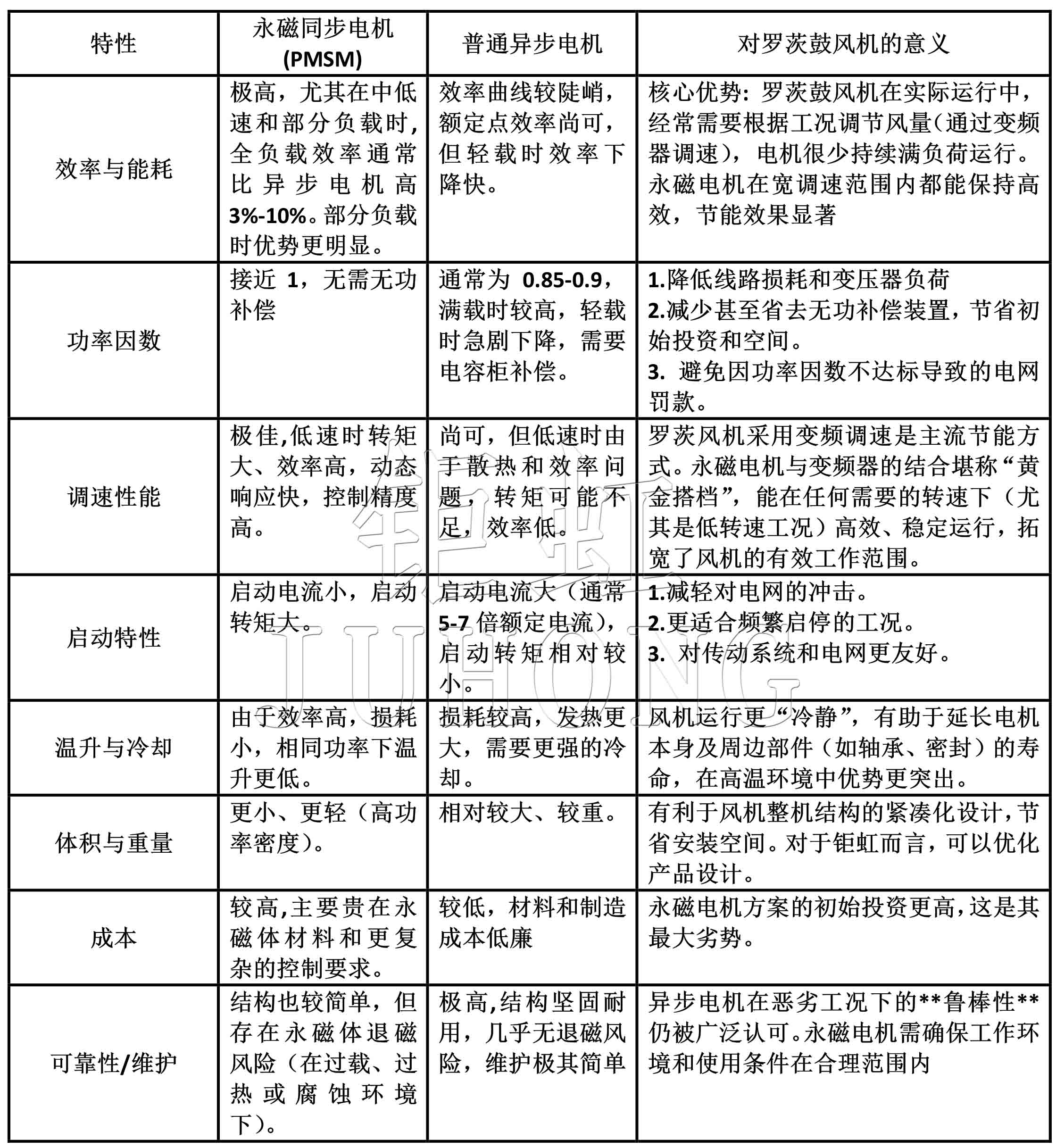 1. 额定点运行:在风机满负荷、额定转速运行时,两者效率差距可能较小(永磁电机仍领先约2-5%)。但罗茨风机很少长期在此工况下运行。