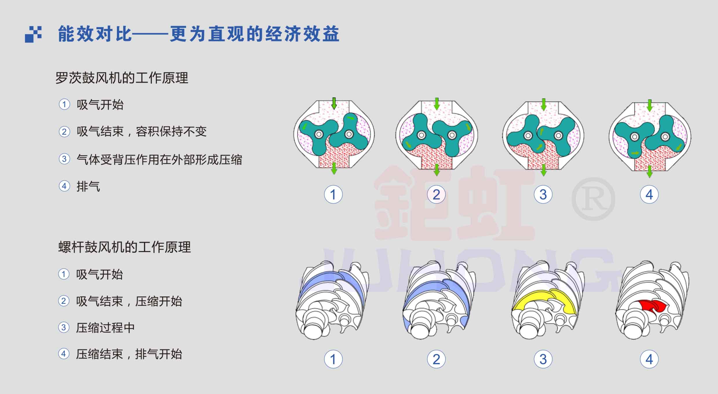3,内压缩升压,气流压力平稳,减少气流波动,因此噪音低,使用环境舒适;